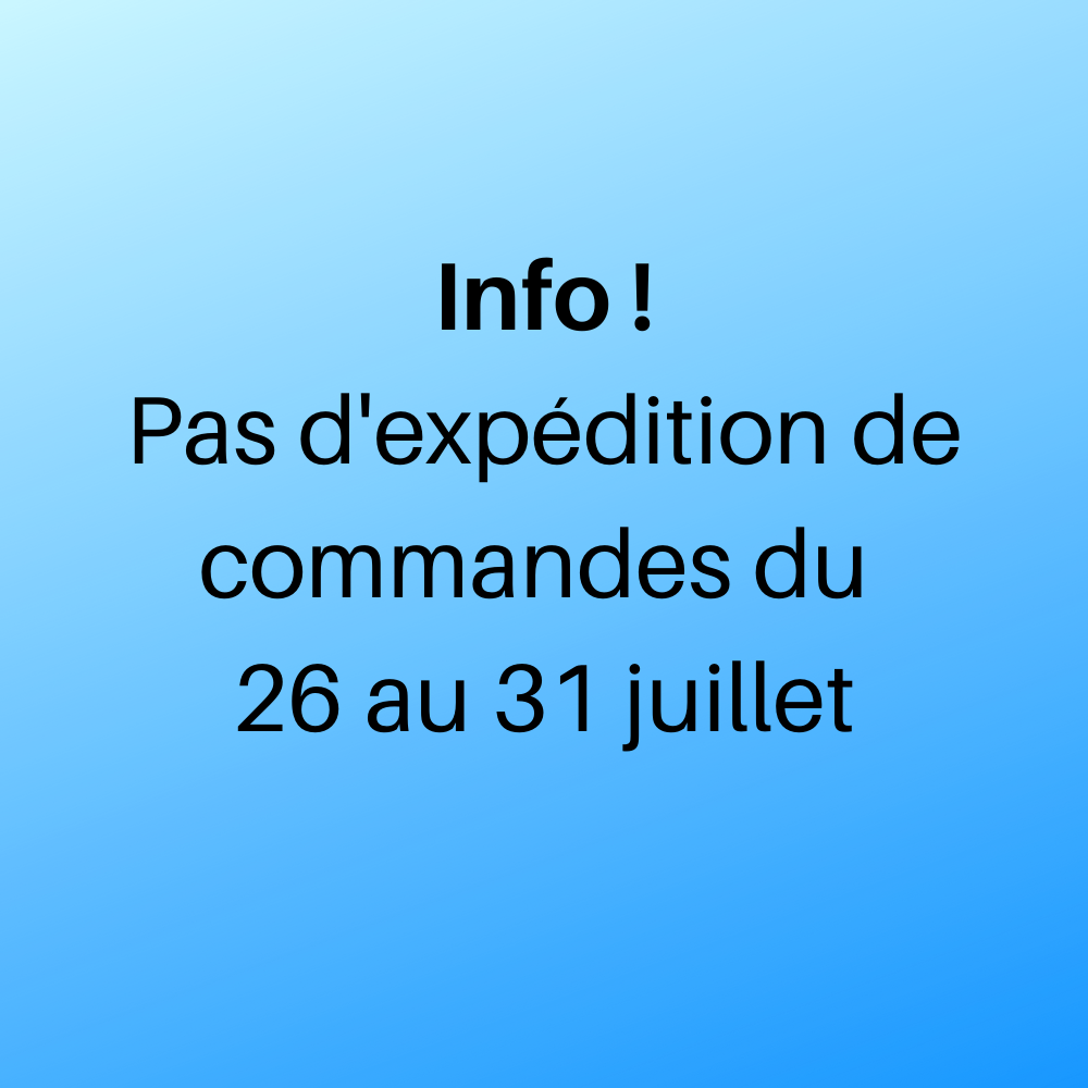 Info ! Pas d’expédition de commandes du 26 au 31 juillet 15 juillet 2021 Barbara Aparicio Précédent Suivant